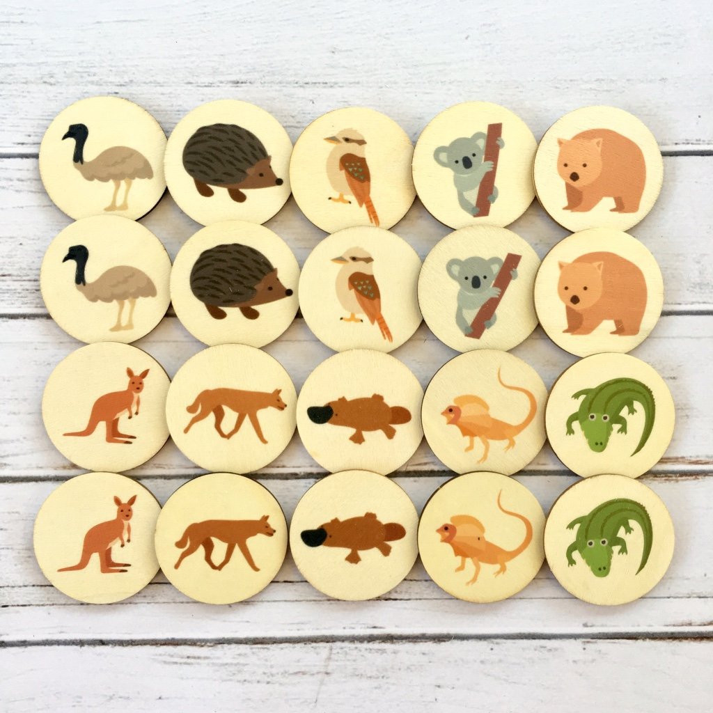 These 20 piece memory match games are Australian made by Queensland brand, My Little Set. The sets are handcrafted from wood with a variety of themes.