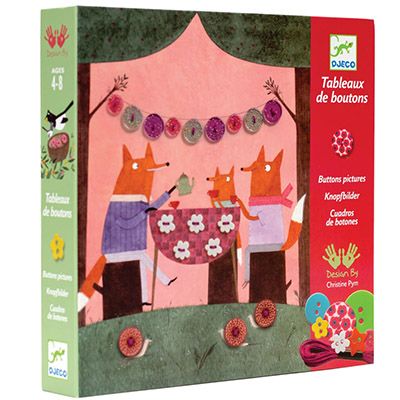 A little adventure in the words is a creative button-craft kit by Djeco. The pretty coloured buttons become bicycle wheels, snail shells, birds eggs and stars in the sky when sewn onto the vibrant lacing cards. The finished results look amazing and will give any child a great sense of achievement.
