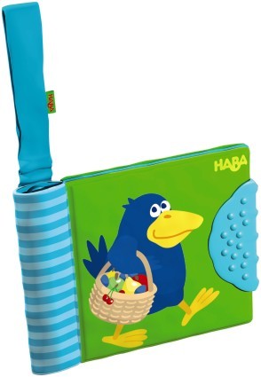This colourful book is made out of fabric and is washable and measurements is approximately 12 x 10 cm.